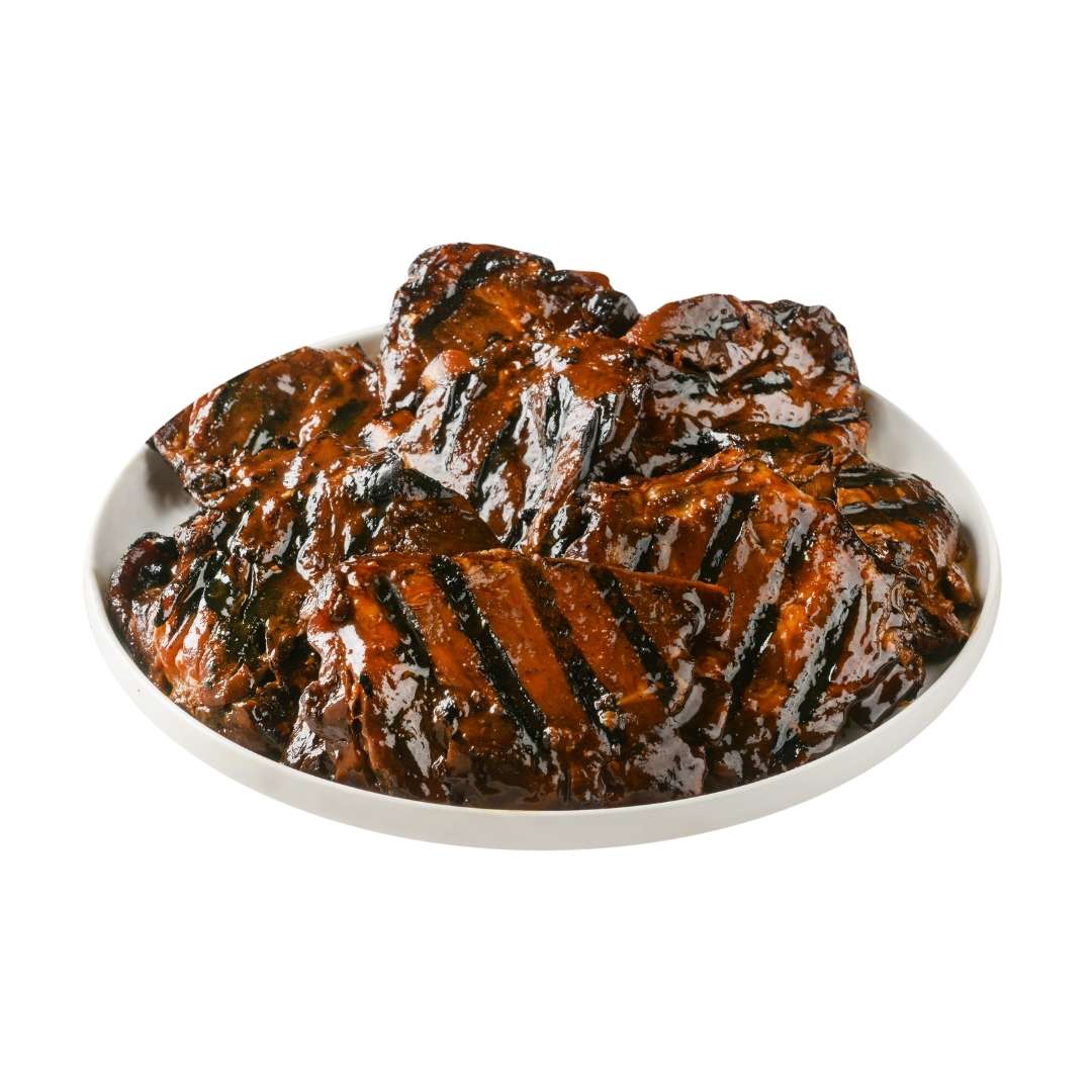Moist and juicy grilled pork ribs, glazed with a sticky sweet sauce