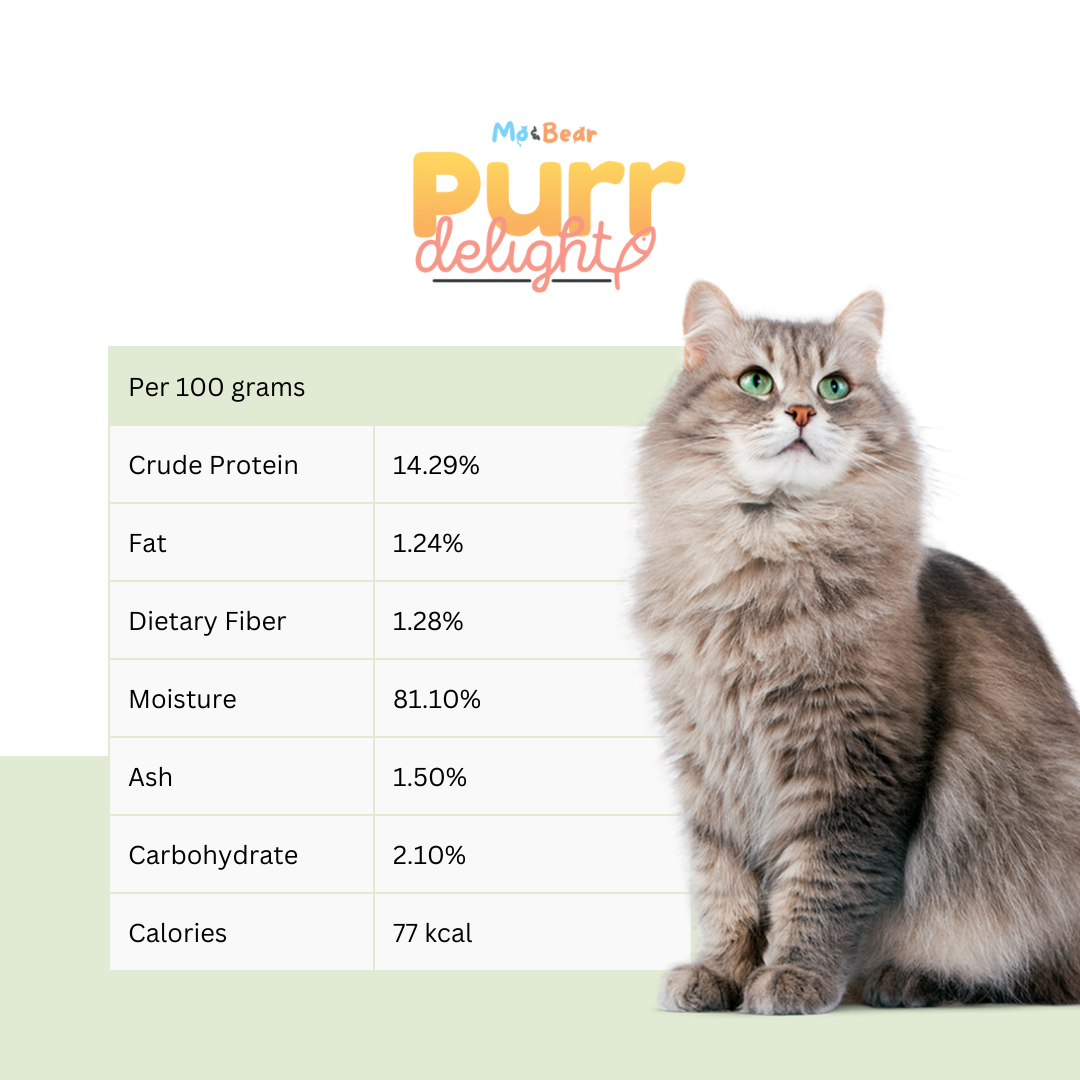 Moringa is a natural energy booster, making it especially beneficial for senior cats. Incorporating this superfood into their diet supports their overall well-being and vitality. Choose Purr Delight Tuna with Moringa for a premium pet care solution that prioritizes your cats' health and happiness. Made with real tuna flakes